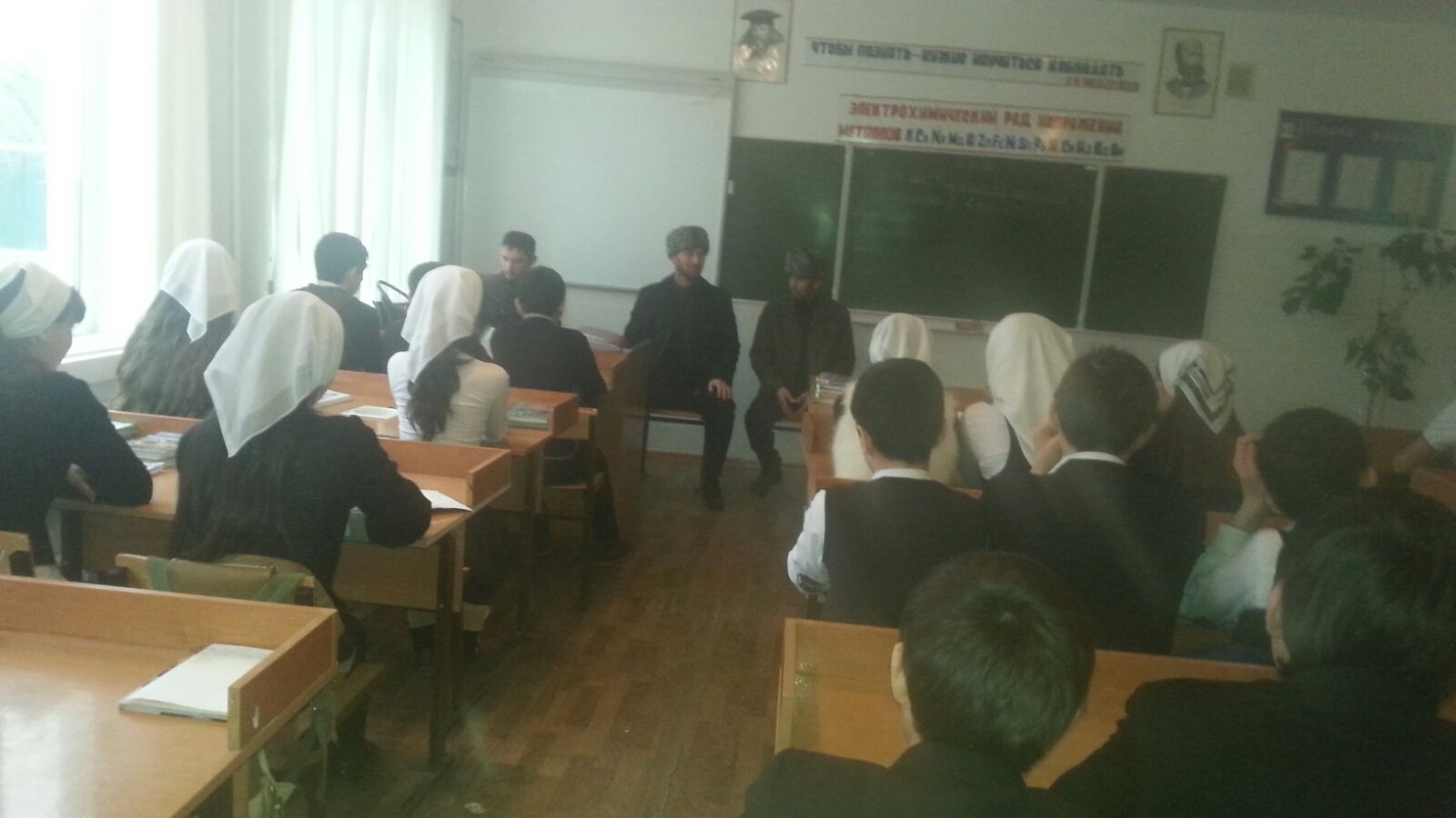 Имам села Тепсуркаев Р.Х.,богослов Засаев М.С. и Педагог по ДНВ и Р,Сибиров Р.А.-провели беседу с обучающимися на тему:"Нравственно-религиозное учение Кунта Хаджи Кишиева".