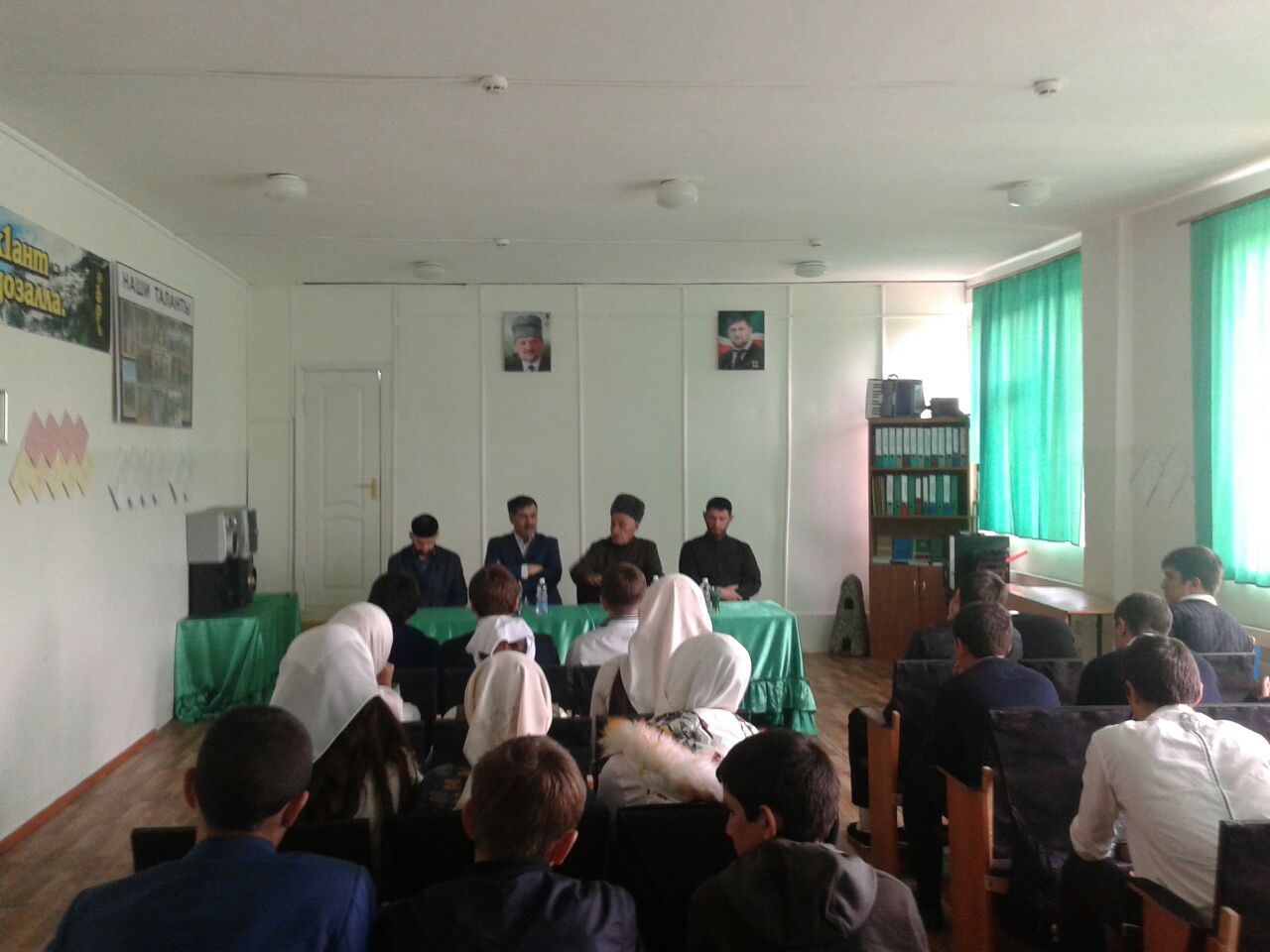 14.04.2016" В МБОУ" СОШ им.С.Лорсанова с.Шаами-Юрт" была проведена профилактическая работа "Хастаме Г1иллакхаш".Мероприятие было проведенно с целью повышения духовно-нравственной культуры учащихся.На мероприятие был приглашен известный писатель ЧР.Берсанов Х-А.