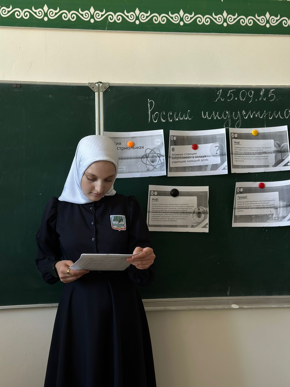 25.09.2025Россия – мои горизонтыСегодня, 25 сентября 2025 года, в нашей школе состоялось увлекательное профориентационное занятие «Россия – мои горизонты» на тему «Россия индустриальная: атомные технологии». Занятие приурочено к 80-летию атомной промышленности России, которая отсчитывает свою историю с 1945 года.В ходе мероприятия учащиеся познакомились с принципами работы современных атомных станций, узнали об экологичности и безопасности атомной энергии, изучили сферы применения ядерных технологий в медицине, космосе и сельском хозяйстве, развенчали популярные мифы об атомной отрасли, познакомились с перспективными профессиями будущего.Такие мероприятия помогают школьникам лучше понять современные технологии и определиться с выбором будущей профессии в одной из самых перспективных отраслей российской промышленности.